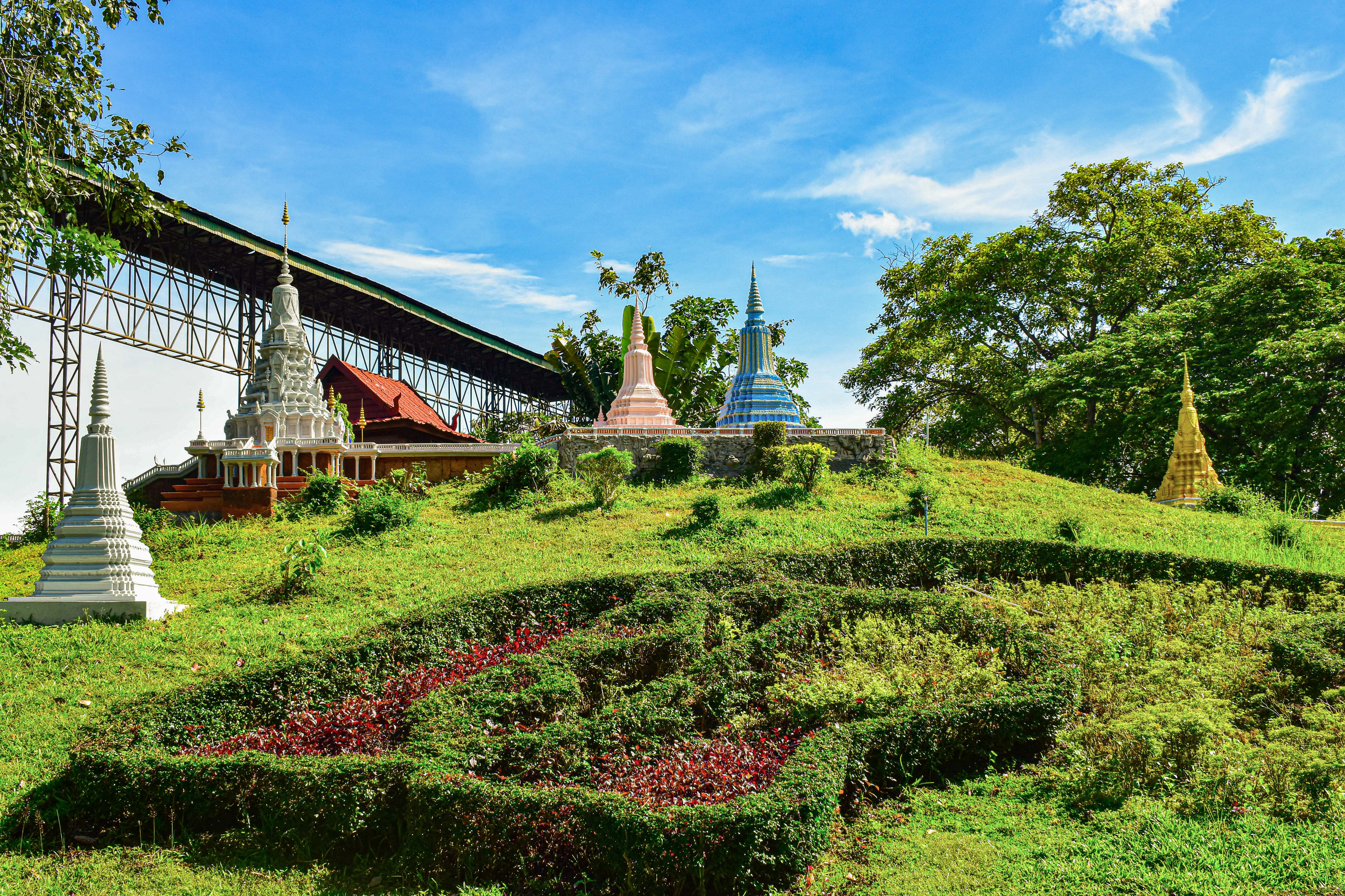 ភ្នំយ៉ាតស្ថិតនៅក្នុងខេត្តប៉ៃលិន ប្រទេសកម្ពុជា ដែលត្រូវបានយកតម្រាប់តាមទំហំពិតប្រាកដ។ ប្រាសាទដែលបុព្វបុរសបានកសាងគំរូស្ថាបត្យកម្មនៃប្រាសាទ និងការតុបតែងប្រាសាទមានភាពខុសគ្នាទាំស្រុងពីប្រាសាទខ្មែរនៅកម្ពុជា ដែលឆ្លុះបញ្ចាំងពីភាពសម្បូរបែបនៃវប្បធម៌សាសនាកម្ពុជា។ ប្រាសាទប្រទេសមីយ៉ាន់ម៉ាឧទ្ទិសដល់ព្រះពុទ្ធល្អអាចប្រទានពរដល់អ្នកភាពរុងរឿងសុខុមាលភាព និងសុភមង្គល។ នៅក្នុងប្រាសាទ មានរឿងព្រះពុទ្ធសាសនាដ៏ធំ ដែលបានលាបពណ៌ជញ្ជាំង មានមនោគមវិជ្ជាខ្ពស់។