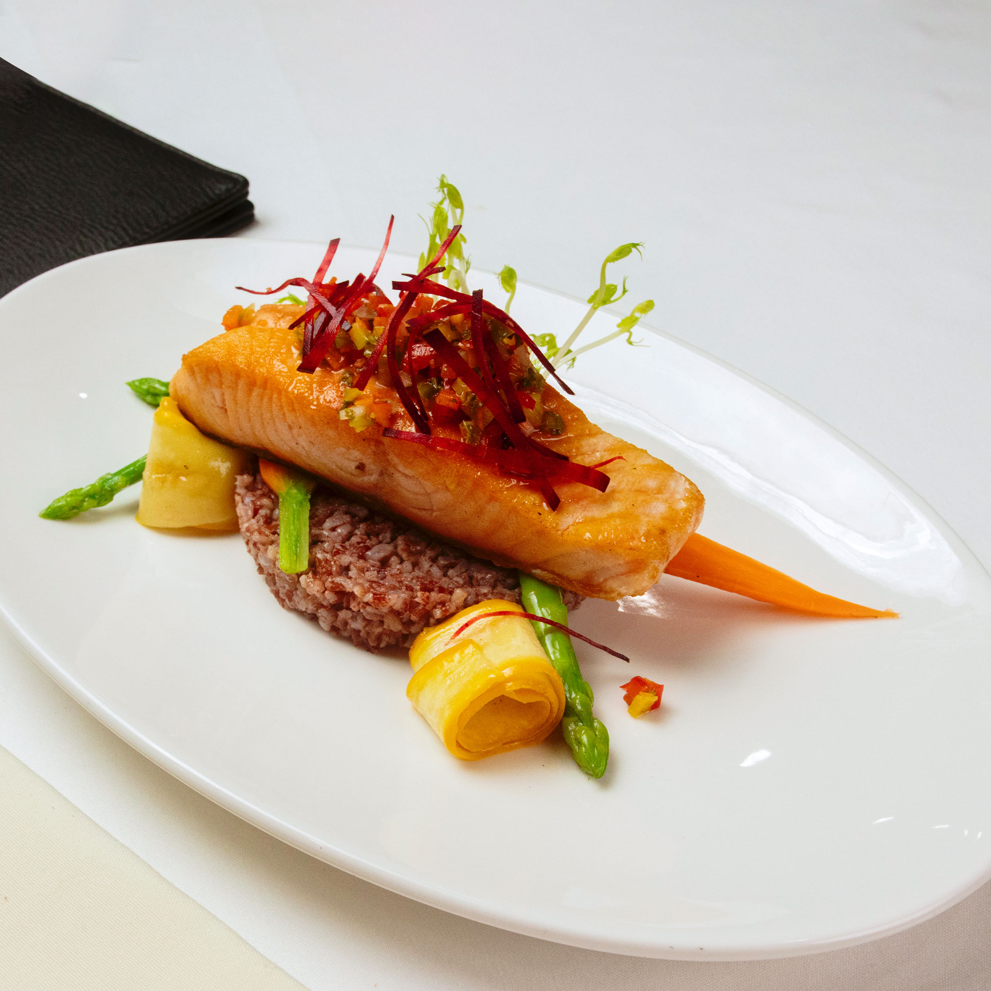 ត្រីសាលម៉ុងចៀនជាមួយសស់ vierge
